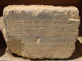 | Description / विवरण | A block of stone with epigraph having nine lines inscription in Devnagri script refer about construction of the fort of Chittor. The last line is engraved with the following words - vaghervala jatiya samayasuta jijakena stambha karapitah. . |