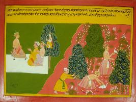 | Description / विवरण | Miniature painting based on Mahabharat - Vana parva depicting Nal s beauty and his power depicting Nala catching a goose but stopped by an attendant saying that, this goose belongs to Damanyanti. |