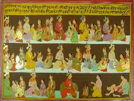 | Description / विवरण | Miniature painting based on Mahabharat - Adi parva depicting various kings and queens with their children. |