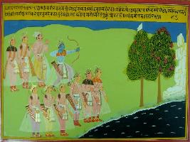 | Description / विवरण | Miniature painting based on Mahabharat - Adi parva depicting that scene in Gurukul when Dronacharya kept a bird and ask his every student to look nobody says that he is looking the eyes except Arjun and when he was asked to five his bow struck straight on the eyes of bird. |