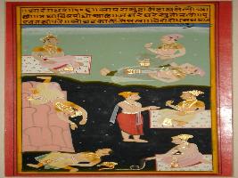 | Description / विवरण | Miniature painting based on Sarangadhar depicting a man drinking poison and a king seated in front of him. At the lower part a man is taking poison directly from the snake bit. |