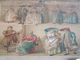 | Description / विवरण | The picture is divided into two panels. It shows Holland people in different outfits. Betrothal dress of a peasant in the Island of Harken in the Zuyder Zee, Frisian dress, peasants of North Holland. Woman and servant. Fisherman of the Zuyder Zee and Guelder |