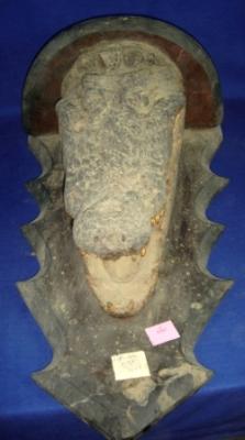 | Description / विवरण | Head of a crocodile with open mouth having prominent teeth. It is preserved with taxidermy system. |