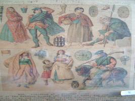 | Description / विवरण | The picture is divided into two panels. Scotland, dress of the Highlanders. Young girl in a plaid of the Sinclair tartan, country girl in a short plaid, man of the Colquhoun, shields, shoes, wigs, etc. are also seen. A man on a horse, an old man sitting, etc |