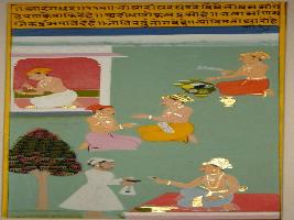 | Description / विवरण | Miniature painting based on Sarangadhar depicting a beggar moving from door to door for alms. Every one has to sacrifice in the limits of their capability. |