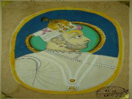 | Description / विवरण | Miniature painting depicting bust of a king, he is facing left and is adorned with jewels. |