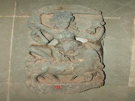 | Description / विवरण | This is a fragmented sculpture of Mahishasurmardini. Defaced, carrying sword in upper hand right side . Other hand carrying trishul. In the upper left hand there is bell. Halo is visible behind head patra-kundla earring , armlet in one hand is visible. It is broken from middle. She is killing Mahishasur Baffelo demon . |