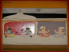 | Description / विवरण | Miniature painting based on Shri Bhagwat Gita. It depicts in the right part Krishna and Arjun is talking, and left side Dhritrashtra and Yudhisthir is talking. |