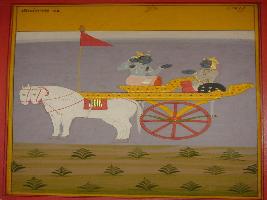 | Description / विवरण | Miniature painting based on Shri Bhagwat Gita. It depicts Krishna preaching Arjun about Shri Bhagwat Gita. |
