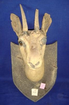 | Description / विवरण | Head of a deer having two curved horns and preserved with taxidermy technique. |