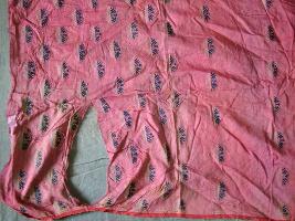 | Description / विवरण | This small piece of silk cloth is having very deep red thin border and its main colour is pink. Embroidery work has been done in floral manner with black, yellow and white colours. |