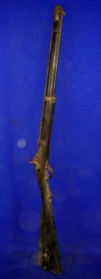 | Description / विवरण | Muzzle loading single barrel topidar carbine with simple wooden butt. |