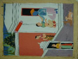 | Description / विवरण | An incomplete painting of a Nayak and Nayika depicting the Nayaka and Nayika sitting in the palatial balcony while the Nayikas is seen in different postures in the right side of the painting. |