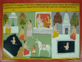 | Description / विवरण | Miniature painting based on Mahabharat - Vana parva depicting the visit of Vasudha tirth which give the fruitfulness of Ashwamegh yagna, the visit of Sindhutam tirth, the visit of Kumari tirth, the visit of Indra tirth and Renuka tirth. |