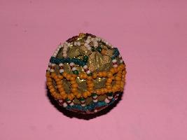 | Description / विवरण | It is a rattle, is decorated with green, pattern net design in false pearl. |
