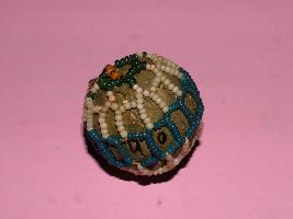 | Description / विवरण | It is a rattle , a toy decorated in green net pattern design. |