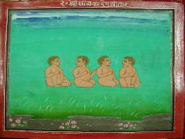 | Description / विवरण | Miniature painting depicting Sinkadas avatar, four children are depicted sitting in a row. |