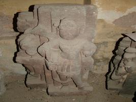 | Description / विवरण | It is a broken sculptural plaque, decorated with broken Alidh sculpture of Vishnu in either side. Arms are broken. |