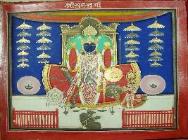 | Description / विवरण | Miniature painting depicting Chaturbhuj ji. Garuda is depicted sitting in front of him. |