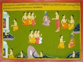 | Description / विवरण | Miniature painting based on Mahabharat - Vana parva depicting of some tirthas like Devitirth, Vamana tirth, visiting to those one gets Vishnu lok, going to Kulpavitratirth makes is equal to alms of thousand cows. |