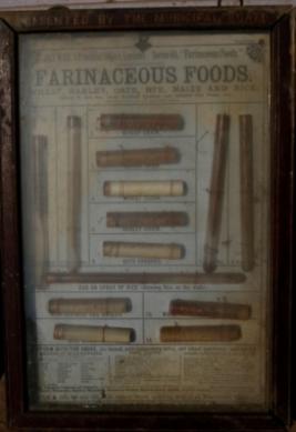 | Description / विवरण | Specimen of farinaceous foods like wheat, barely, oat, rice and maize kept in glass tubes in a wooden framed box. |