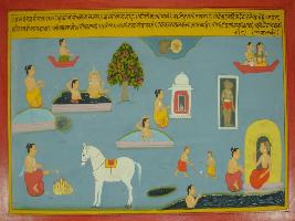 | Description / विवरण | Miniature painting based on Mahabharat - Vana parva. The painting depicts the Dadhishir asram and Kanyashram where kids are playing and priests are worshipping while on the painting worshipping. |