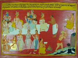 | Description / विवरण | Miniature painting based on Mahabharat - Sabha parva depicting Sishupala is talking and insulting Bhishma by calling him eunach. |