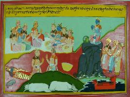 | Description / विवरण | Miniature painting based on Mahabharat - Sabha parva depicting Sishupal abusing Vishma for what he did in past. |