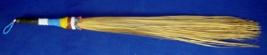 | Description / विवरण | Fly wisk made of date plan, leaf strips with wooden handle. The handle is covered with white, red, yellow, blue and black coloured beads and having a hanging at the bottom. |