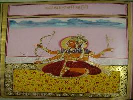 | Description / विवरण | Miniature painting depicting four handed Goddess in sitting position, most probably she is Durga. |