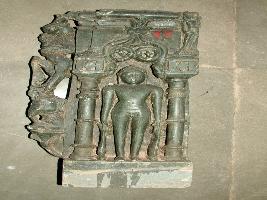 | Description / विवरण | This is a sculpture of Jain Tirthankar in Sambhangi standing pose carved in a niche having top stupika. It is a composite form of Vyala motif. On the top most part kirti-mukha is depicted. |