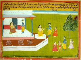 | Description / विवरण | Miniature painting based on Krishna charit Krishna is shown with mother Yashoda, then Krishna is shown with Nand, then he is going out with his friends. |