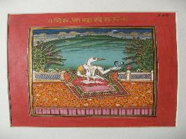 | Description / विवरण | It is a painting of crane head male. In left armed two snake with hoods is shown. A lotus had also shown in left armed. Painting is in padmasana. Banana tree is shown in side portion. Top back blue sky is shown. |