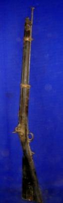 | Description / विवरण | Muzzle loading single barrel topidar carbine with simple wooden butt. |