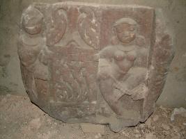 | Description / विवरण | It is a plaque which is originally, a part of a upper door jamb of a sanctum, decorated with nine planets on top hand, followed by flying couples, holding garland; followed by one large sculpture of a couple in standing posture. |