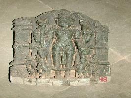 | Description / विवरण | This is a defaced sculpture of Shiva standing in Sambhang posture. Four handed. Carrying trishul in one hand. He is wearing necklace, kundala earring , armlet bajuband , waist ornament and katisutra. Four attendents are depicted at the bottom. |