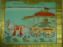 | Description / विवरण | Miniature painting depicting Ghumbatri murti that seen an a chariot pulled by two horses. |