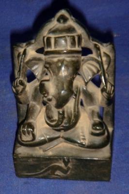 | Description / विवरण | Independent small image of four handed Ganesh in seated posture. Attributes from right below 1 rosary 2 ankush 3 axe 4 not clear. He is wearing a crown and his vahan mouse is embossed on the pedestal. |