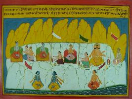 | Description / विवरण | Miniature painting based on Mahabharat - Sabha parva. The painting depicts the demon Mai is going towards Kailash where the Mai mountain is situated, where Ganga flows and Bhagirath is doing penance. |