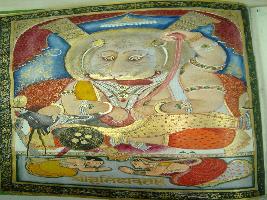 | Description / विवरण | Miniature painting depicting the Narasimha avatar of Vishnu while Prahlad and his mother is seen in the lower part of the painting. |