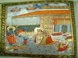 | Description / विवरण | Miniature painting depicting the Brahman incarnation of Lord Vishnu. The incarnation is called the Trivikram pose of Vishnu while king Bali is seen in the painting. |