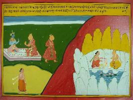 | Description / विवरण | Miniature painting based on Mahabharat - Sabha parva depicting demon Mai telling that he will go to Kailash and bring the gada for Sabha. |