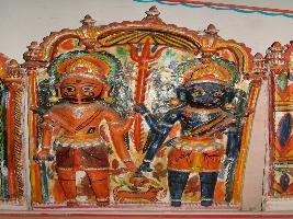 | Description / विवरण | It s a clay sculpture of god and goddess. Both sculptures has four arms. Trishul in mid of god-goddess. It may be represented to Shankar and Parvati. |