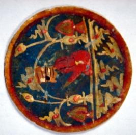 | Description / विवरण | Circular flat ganjifa depicting a man on green background and other side is plain. |