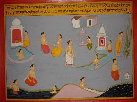 | Description / विवरण | Miniature painting based on Mahabharat - Vana parva. The painting depicts Parasurama who is visiting many holy places where he also worshipped and take bath in the river Ganga. |