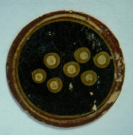 | Description / विवरण | Circular flat ganjifa depicting seven circles on black background and other side is plain. |