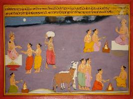 | Description / विवरण | Miniature painting based on Prithviraj Raso. king is depicted making alms and performing yagna. On upper part. On the lower part two Brahmans are depicted performing yagna. |