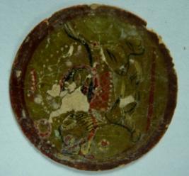 | Description / विवरण | Circular flat ganjifa depicting a mythical animal on grey background. The other side is plain. |
