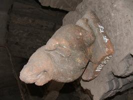 | Description / विवरण | It is a sculpture of an elephant, carved with open uplifted face, without front feet in red stone. |