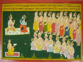 | Description / विवरण | Miniature painting based on Mahabharat - Vana parva depicting Narad is telling Bhishma, about worship of Ganga. Later Narad is telling some fact of king Yudhisthir. |